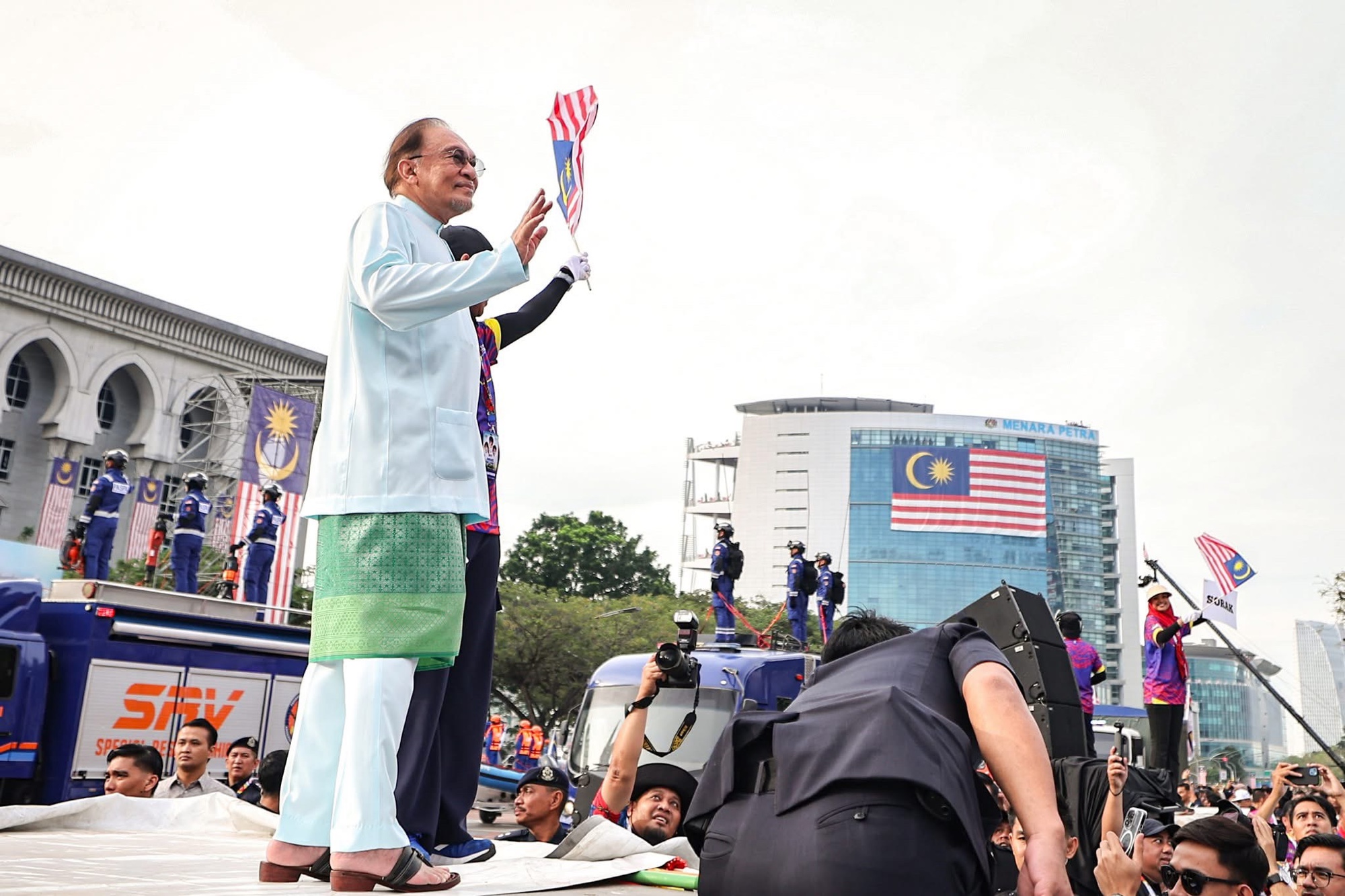 PUTRAJAYA: Perdana Menteri, Datuk Seri Anwar Ibrahim hadir meninjau raptai penuh Hari Kebangsaan 2025 di Dataran Putrajaya hari ini.