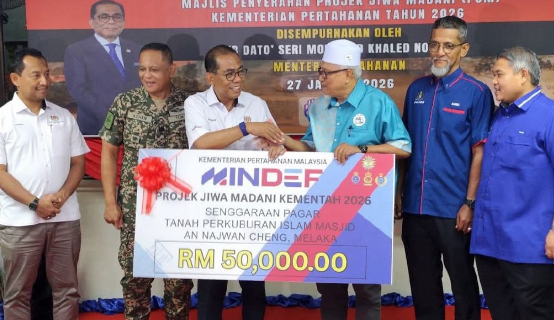 Beliau berkata demikian selepas menyerahkan replika cek bagi pelaksanaan Projek Jiwa Madani Kementerian Pertahanan 2026 serta bantuan kit makanan kepada golongan kurang bernasib baik di masjid berkenaan, hari ini.